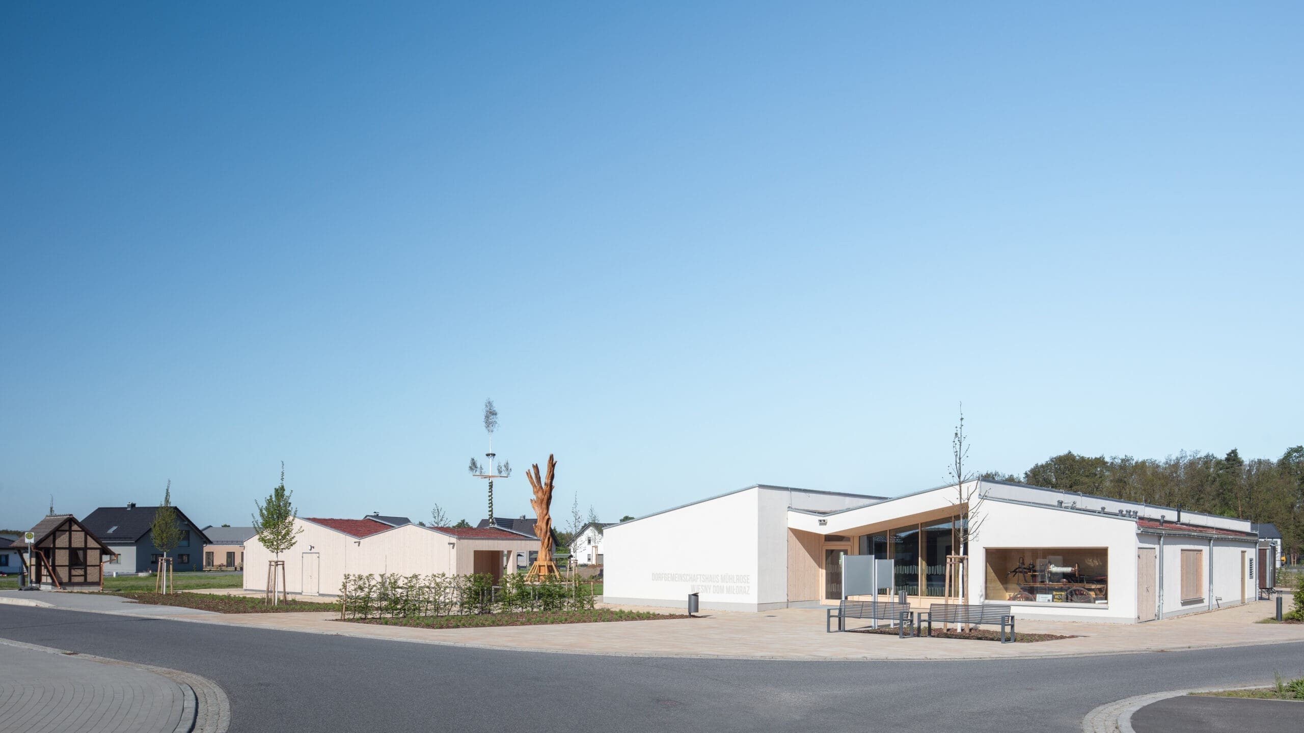Im Rahmen der Umsiedlung des Dorfes Mühlrose für einen Braunkohletagebau wird ein Ersatzneubau für das Dorfgemeinschaftshaus als neues identitätsstiftendes Zentrum des neuentstehenden Wohngebietes errichtet werden.