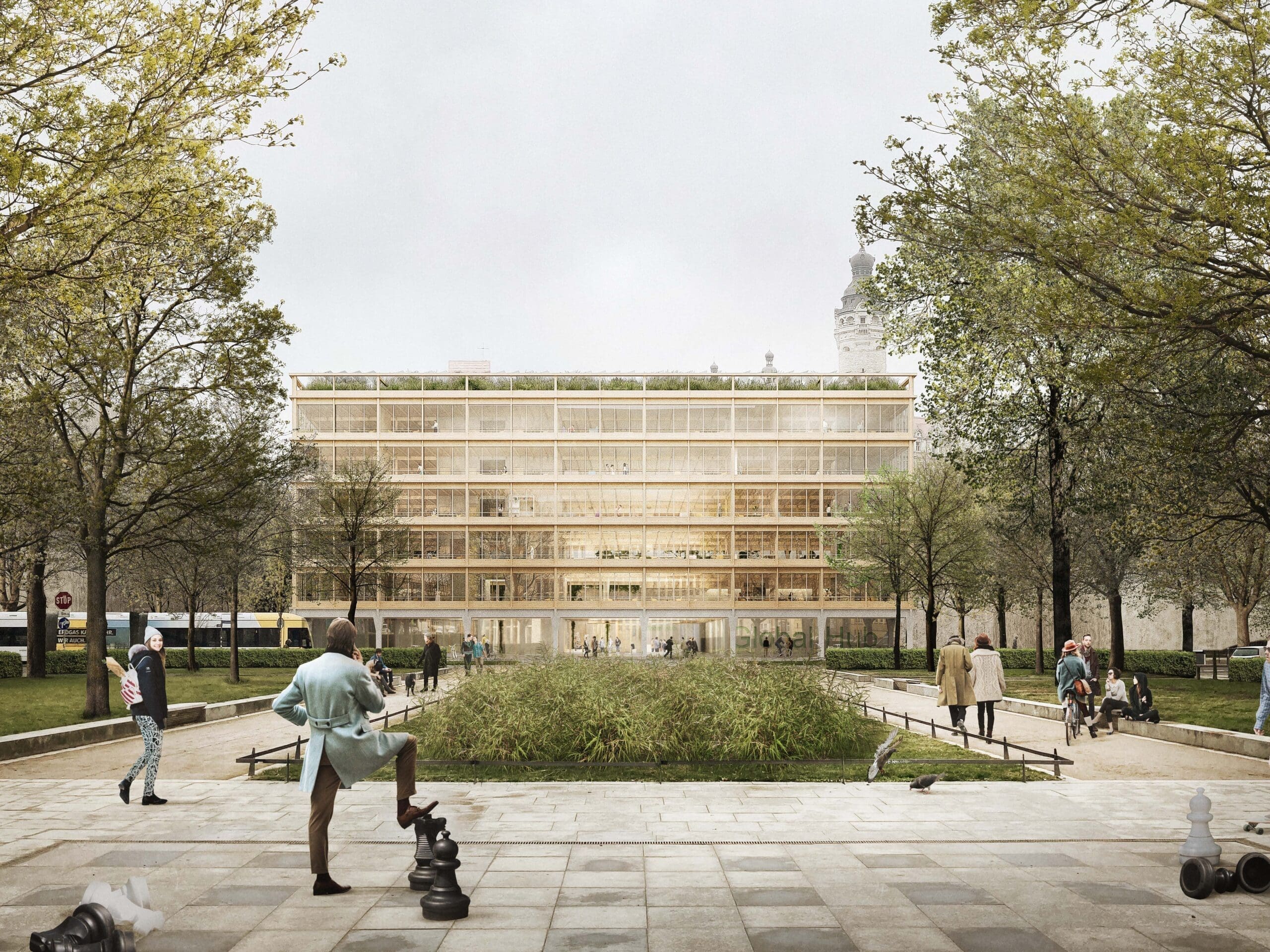Auf dem Wilhelm-Leuschner-Platz in Leipzig soll in herausragender innerstädtischer Lage ein Neubau für den Forschungsbau „Global Hub“ der Universität Leipzig realisiert werden, der interdisziplinäre Forschungen zu neuen globalen Dynamiken unter einem Dach bündelt und mit Partnereinrichtungen weltweit vernetzt.