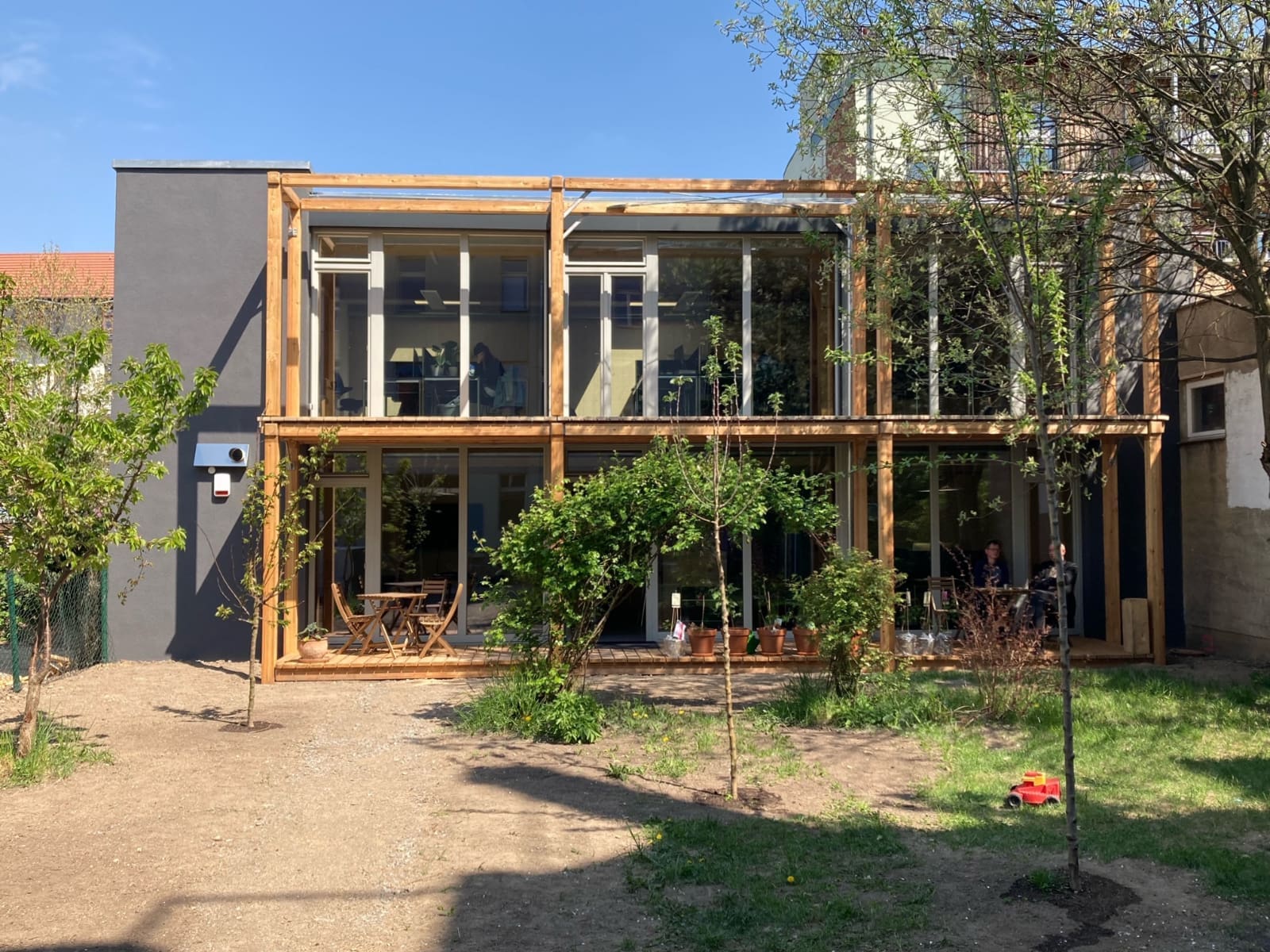 Im Leipziger Stadtteil Plagwitz-Lindenau entstand dieses Büroloft als Massivholzbau und Hinterhaus eines straßenseitig gelegenen Gründerzeitgebäudes.