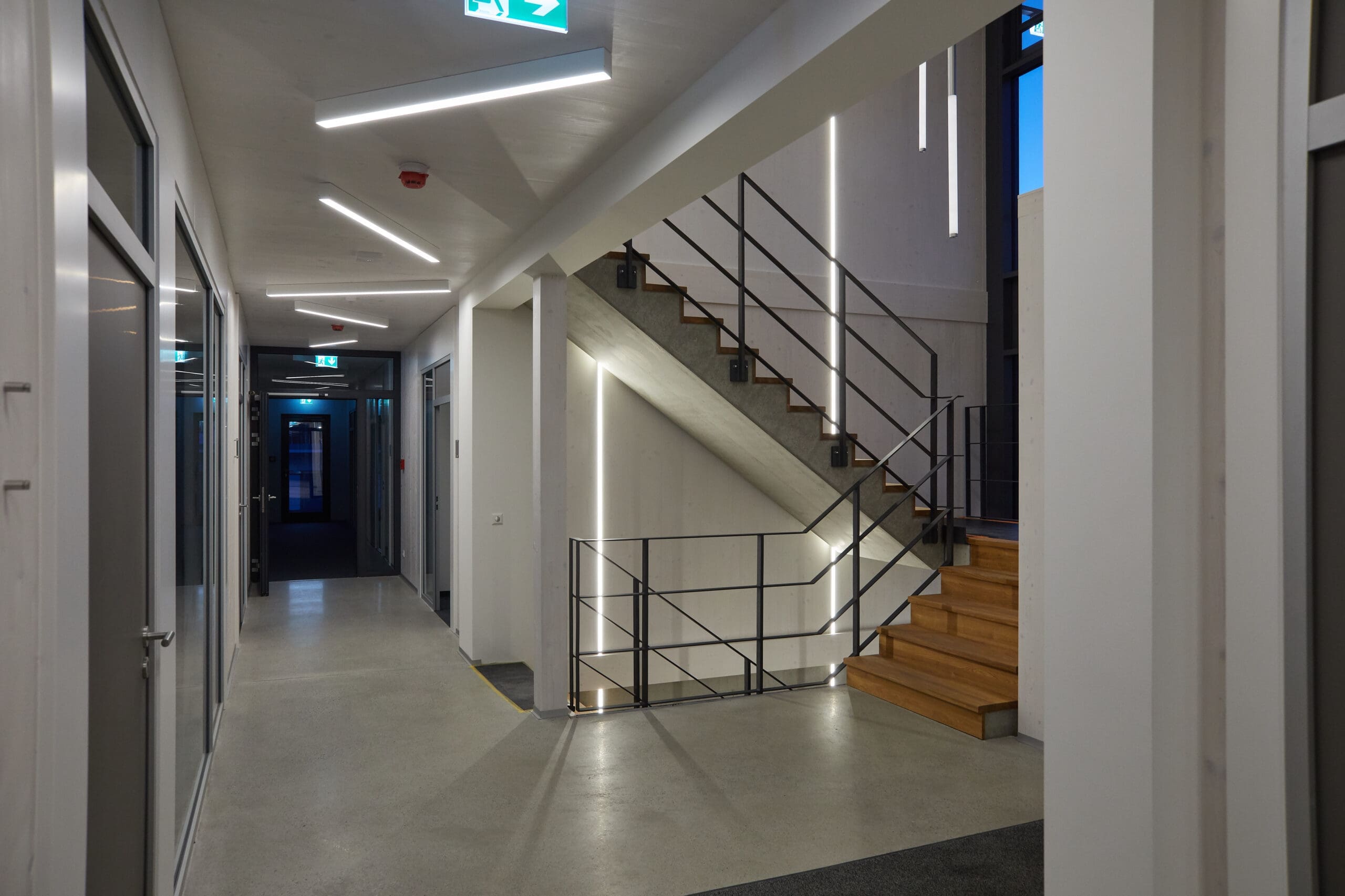 Das dreigeschossige Entwicklungszentrum bietet auf rund 1.300 m² Nutzfläche flexible Arbeitsbereiche sowie eine integrierte Cafeteria. Das Gebäude wurde in moderner modularer Holzbauweise errichtet. Teilweise begrünte Außenflächen tragen zur Verbesserung des Mikroklimas bei.