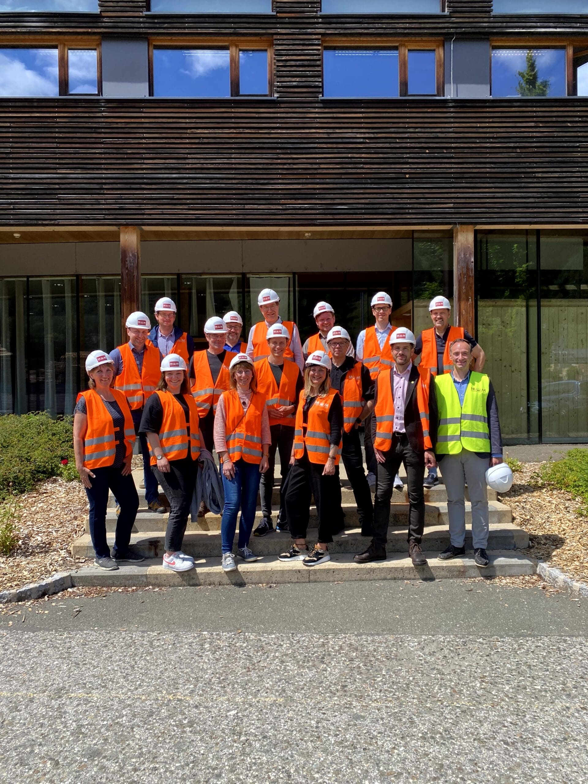 Die Reise führte die Teilnehmenden zu Kaufmann Bausysteme in Kalwang und sie erlebten die Effizienz und Nachhaltigkeit der Holzbauweise durch maximalen Vorfertigungsgrad. In Leoben wurden das Brettsperrholzwerk von Mayr Melnhof Holz und die Wohnhausanlage Steigtalstraße, ein Vorzeigeprojekt für den sozialen Wohnungsbau, begutachtet. Der Tag endete mit einem Besuch des OeAD-Gästehauses mineroom, dem weltweit ersten großvolumigen Passivhaus in Holzbauweise.